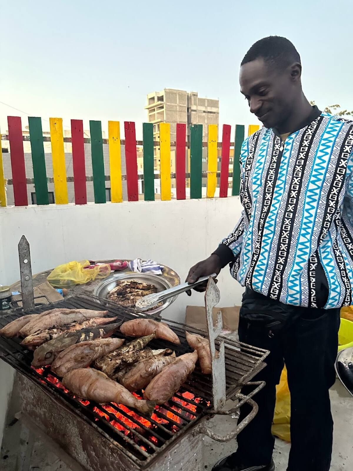 Boucar makes Senegalese tea (attaya) on the rooftop. Tea time often entails
