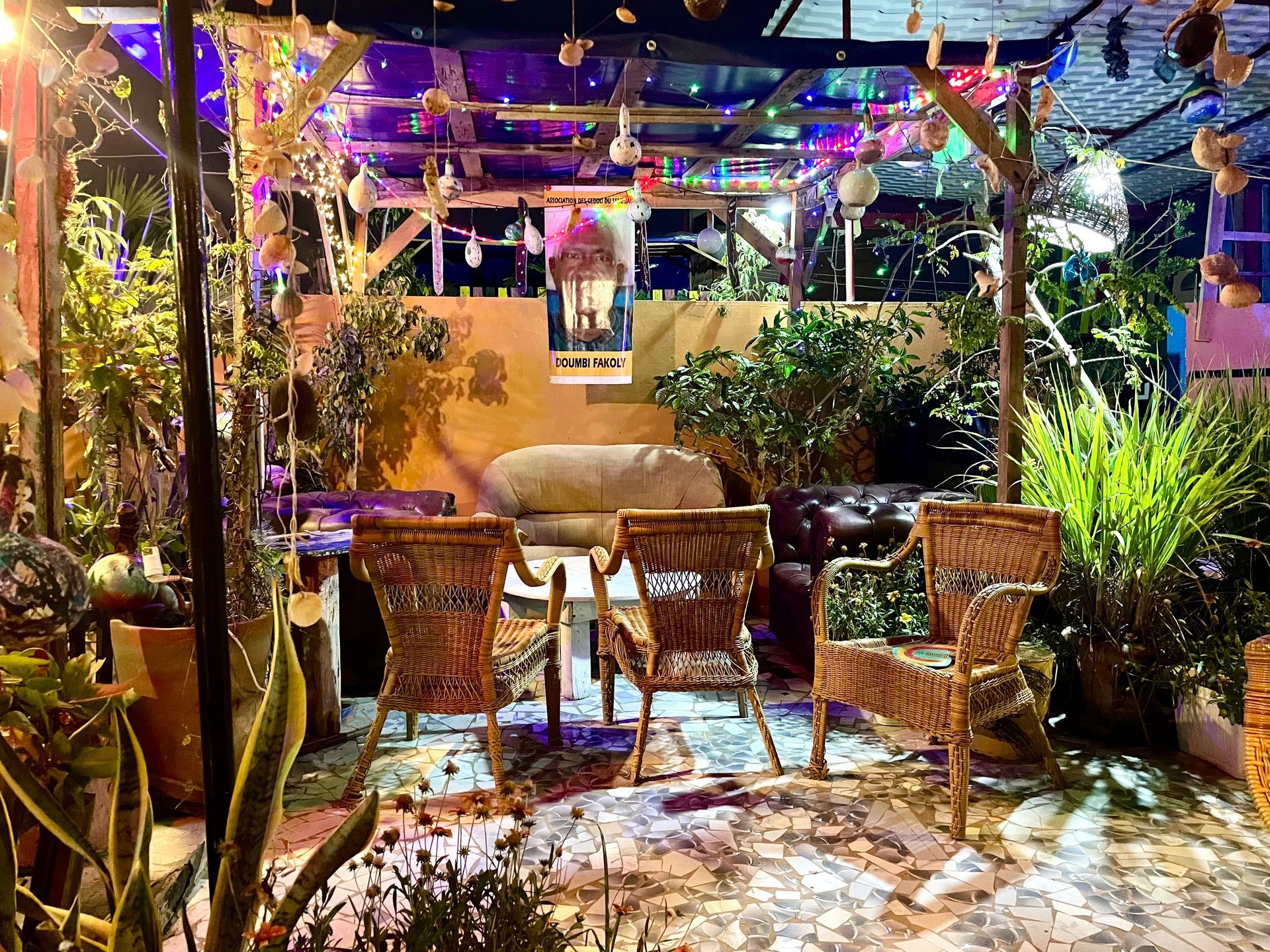 Big and Jessie both play in Big's band "BIG & Sous L'Arbre Acoustik," a blend of Afro traditional music, influenced by rhythms across West Africa. We usually hold a concert once a month on the rooftop at Fadidi House. All their music is original and composed by Big. Check us out online!